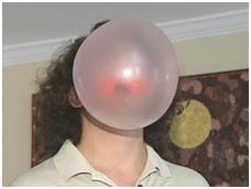 Jamie keeps careful track of gum characteristics. "I've just created box after box with the label of the gum in there." For pastels, he likes Fruit Stripe. "For bright colors that are really bold, very spread able gum, I use a lot of Bubblicious."